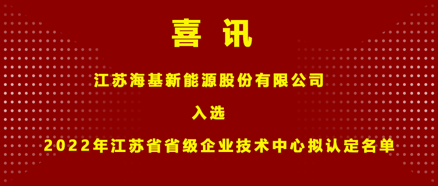 近日,江蘇省工業和信息化廳發布了“2022年江蘇省省級企業技術中心擬認定名單公示”的通知。經過嚴格的綜合考核,江蘇海基新能源股份有限公司成功入選。