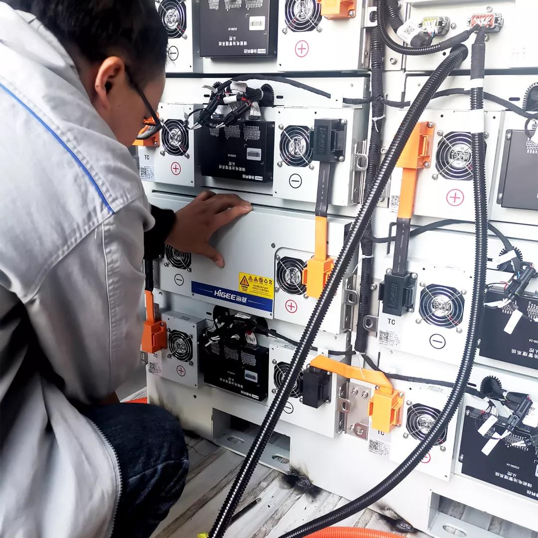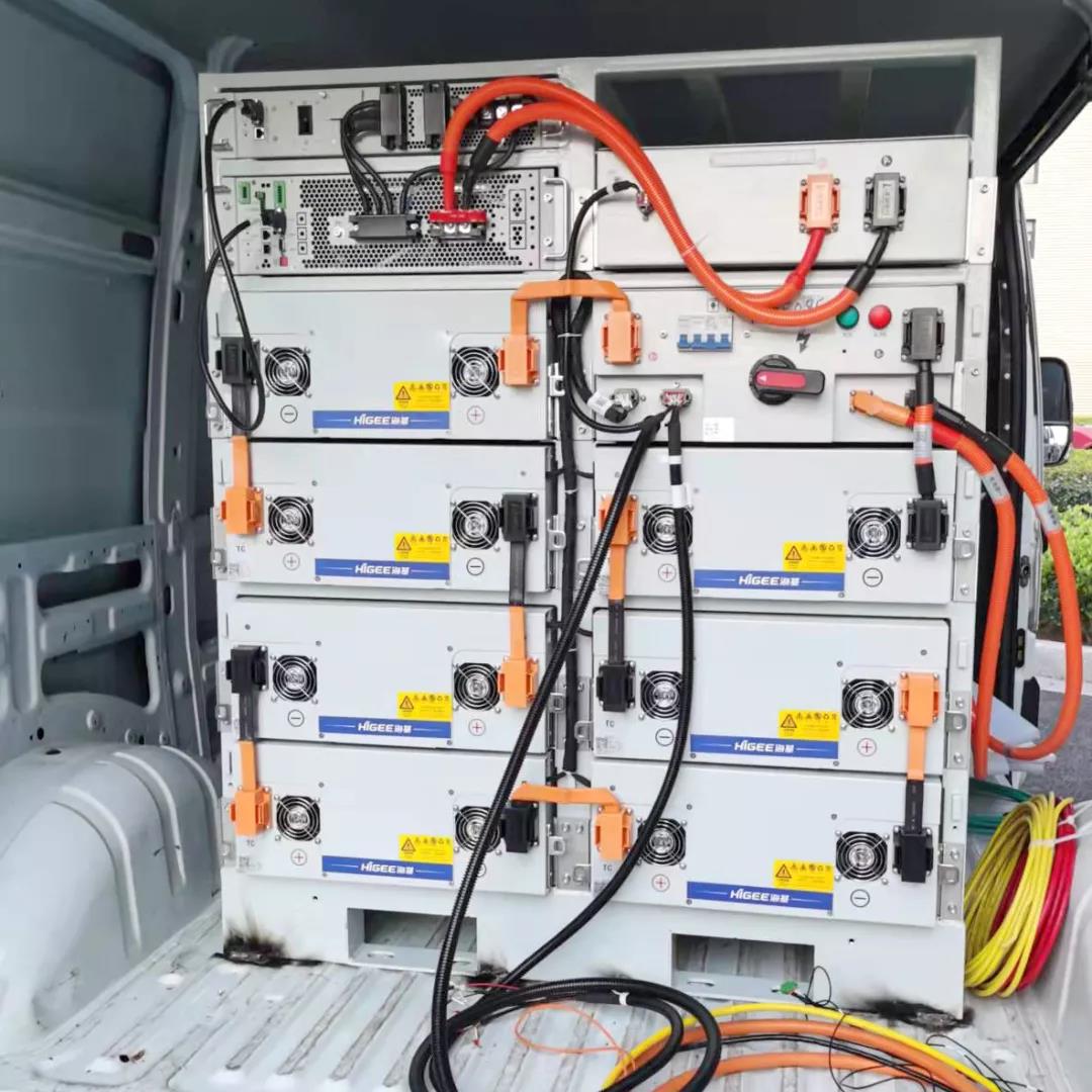 最近海基新能源廠區(qū)PACK車間門口停放的一輛白色依維柯頗引人注意,而現(xiàn)場PACK安裝人員正忙碌的調(diào)試系統(tǒng)和安裝電池,原來這是一輛移動儲能車!
